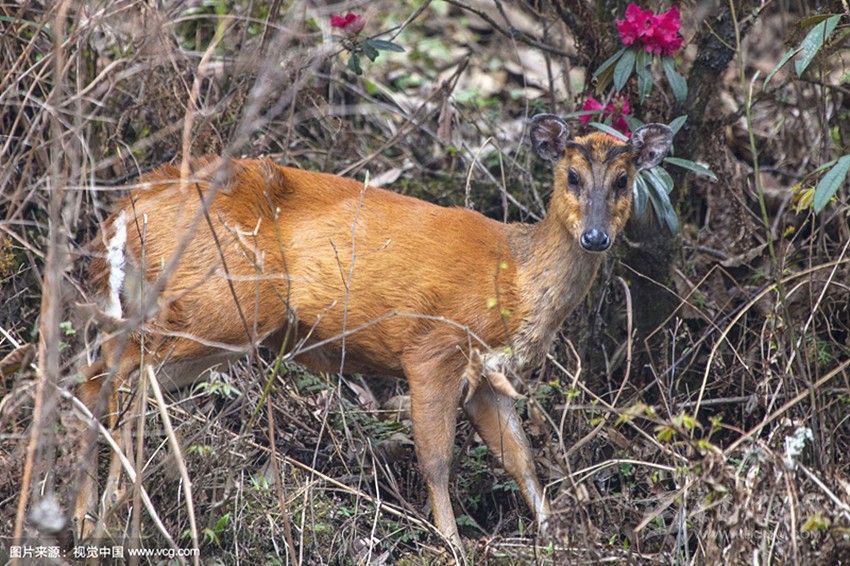 在接下來的日子里,隊(duì)員們近距離看到了水鹿、毛冠鹿、鬣羚;遠(yuǎn)遠(yuǎn)地看到成群的白唇鹿在山頂吃草;在一處海拔4200米的山頂草甸上,一只野豬甚至魯莽地沖向隊(duì)員們,隨后又在隊(duì)員們尖叫聲中停了下來,傻乎乎地看了一會兒后又慌忙飛奔而去。在林子里,水鹿、鬣羚的糞便出現(xiàn)的概率很高,斑羚、毛冠鹿以及麝的糞便也偶爾可見。