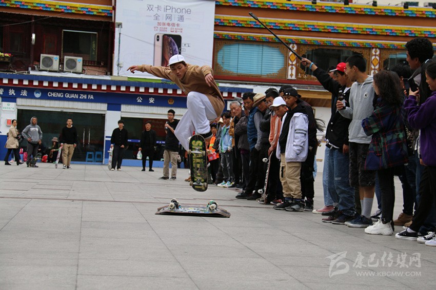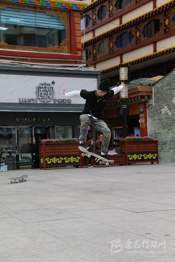 6月22日,世界滑板日,康定市情歌廣場,一群滑板少年舉著“GOTTA’318”大旗,正在演繹精彩。他們時而團隊作業(yè),時而單兵作戰(zhàn),時而爭相競技,時而相互逗樂。當他們舞動旗幟,蛇形而行,呼嘯而來,你會感受到蓬勃的青春氣息撲面而來;當他們帶板直上滑桿,倏忽而過時,你會在那一剎那感到記憶一陣空白,然后發(fā)出一聲驚嘆;當他們瞬間起跳,在空中360度轉(zhuǎn)體,然后像雄鷹一樣翱翔時,你會感覺歲月易老,對青春只有追憶;而當他們競技“爭高”“望遠”時,你會感受到那鍥而不舍的奮斗精神充盈你的脈管……