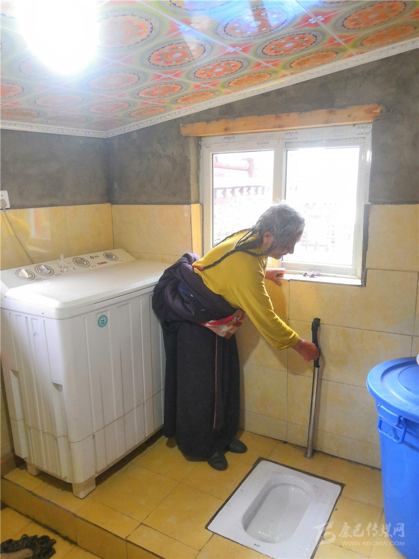 淺棕花紋的地磚、白色的墻磚、沖水式蹲坑、陽光從窗戶上透進來,洗漱臺上洗發(fā)露和香皂整齊的擺放著,24小時供應熱水的熱水器讓人恍惚住在酒店。村民絨熱按一下沖水器,高興地說:“現(xiàn)在家家戶戶都有了新廁所,沖水方便沒有味道,以前只能在電視上看到的廁所現(xiàn)在我們也可以用,自從改造了廁所感覺家里都寬敞了許多?!?/p>
