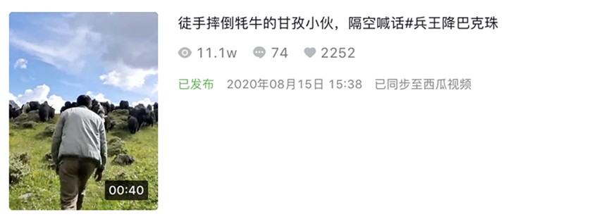 8月3日,這段僅有10秒長的視頻,在抖音短視頻平臺《甘孜日報》康巴傳媒抖音號發(fā)布后,短短一天內獲得了800多萬次播放量,200多名網友留言評論,18萬次點贊更是“宣告”其正式成為“網絡爆款”。
