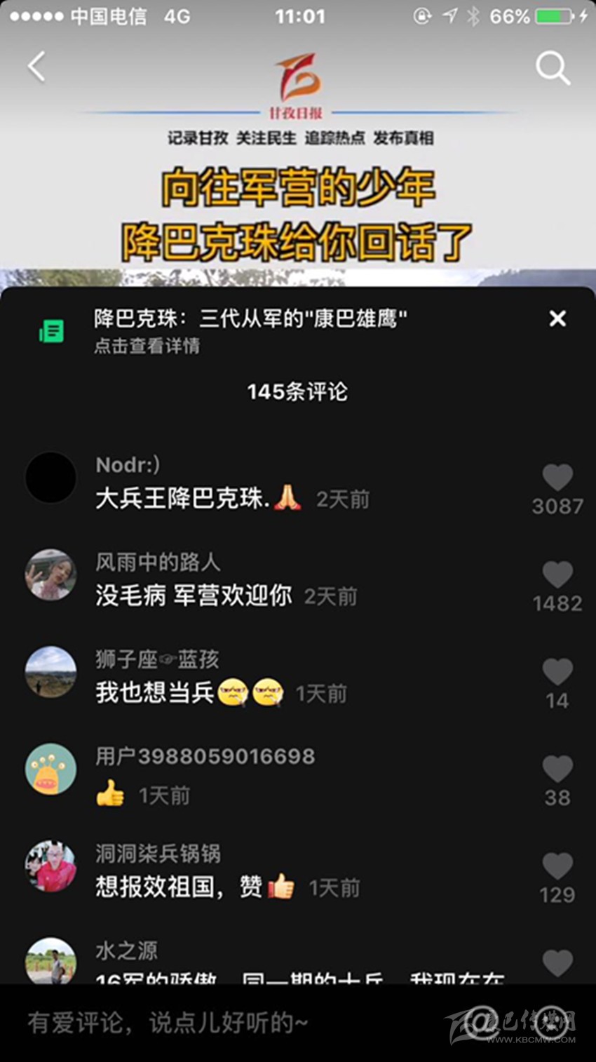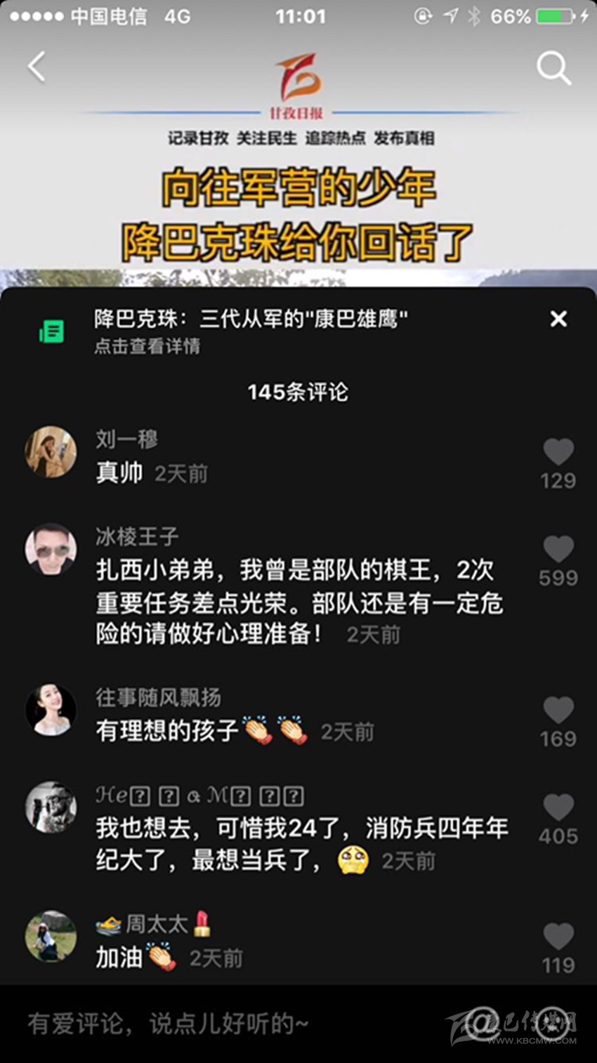 這段視頻發(fā)布后,被網友們爭相轉載,迅速成為熱點,在6小時內獲贊16.3萬次,成為又一“爆款”視頻。同時,大家在留言中,一致將祝福送給兩位正在逐夢的“康巴漢子”。