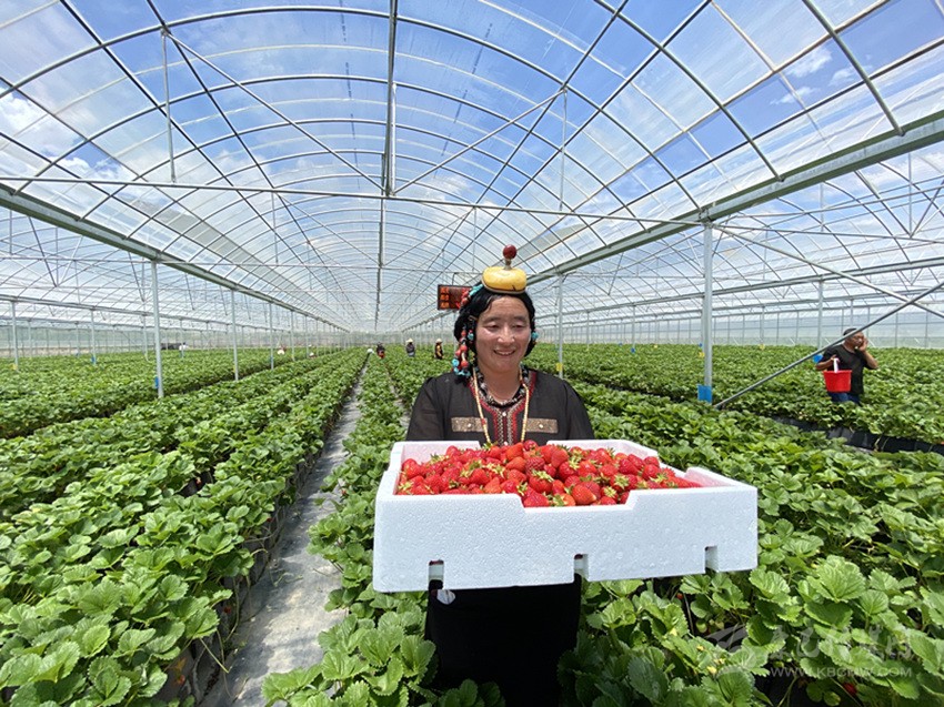 豐收的草莓映紅了村民的笑臉。