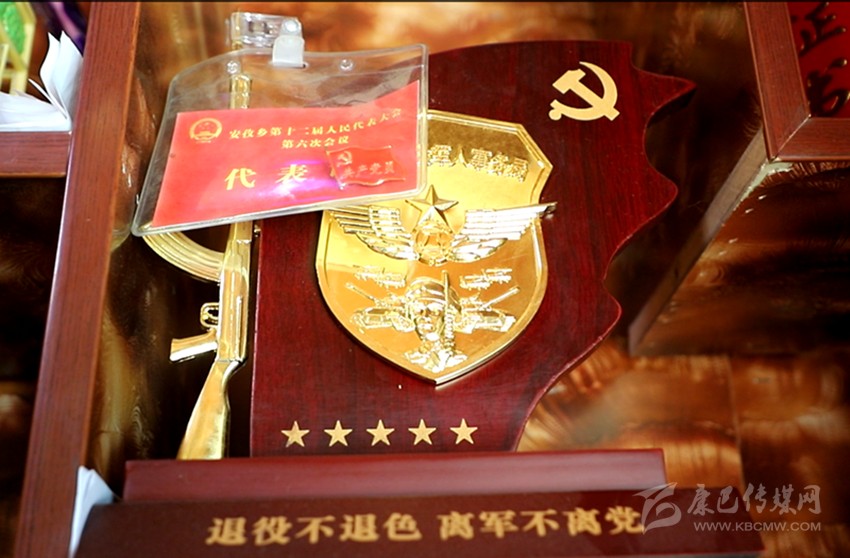 西濤老人珍藏的鄉(xiāng)人代會(huì)代表證及退役紀(jì)念品。