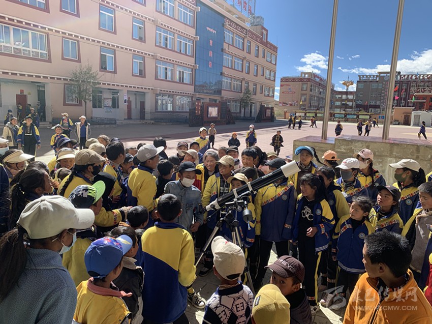理塘縣第四完全小學(xué)是個牧區(qū)寄宿制學(xué)校,這也為孩子們夜晚觀測星空創(chuàng)造了機(jī)會。“天文社社員每周有兩次利用天文望遠(yuǎn)鏡觀測的機(jī)會?!蓖踅险f,每次社員們在觀測時,后面總會跟來一群低年級的學(xué)生。