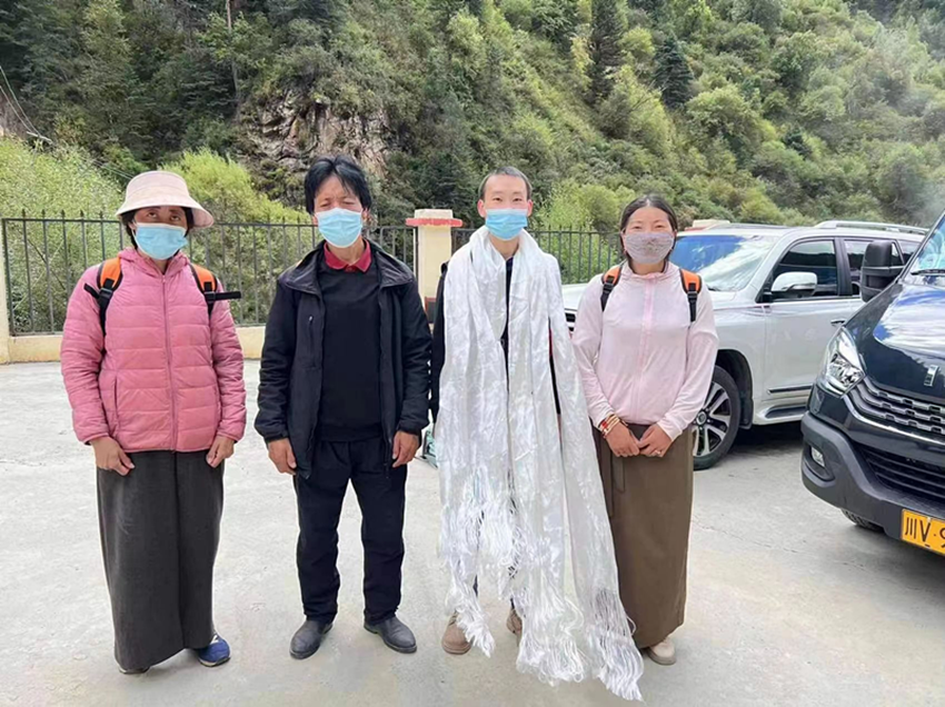 群眾為熊歡獻(xiàn)上哈達(dá)并合影留念。