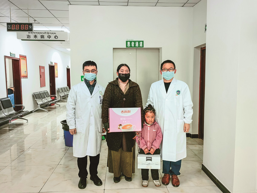 治療同時,詹宇豪還十分關注朵朵的心理健康。詹宇豪和醫(yī)療團隊其他隊員經(jīng)常鼓勵、安慰朵朵,送她小禮物和營養(yǎng)品,向家屬宣教康復注意事項。了解到朵朵的家庭情況后,詹宇豪和醫(yī)療團隊醫(yī)師王巨峰積極協(xié)調(diào)溝通,向巴塘縣中藏醫(yī)院提出申請,減免了朵朵的治療費用,并通過千島湖安徽商會募集到6000元善款,用于朵朵的后續(xù)治療和生活。