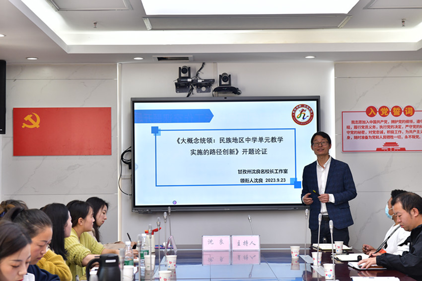 除了以上良策,沈良在擔(dān)任我州名校長(zhǎng)工作室領(lǐng)銜人時(shí),還注重我州教育事業(yè)的全面均衡發(fā)展。基于工作室成員有來自九龍、雅江、丹巴、鄉(xiāng)城等地的教育工作者,沈良以州級(jí)課題大概念統(tǒng)領(lǐng):“民族地區(qū)中學(xué)單元教學(xué)實(shí)施的路徑創(chuàng)新”為載體,開展了系列活動(dòng)探索全州教育教學(xué)改革,高效助力全州教育現(xiàn)代化發(fā)展。