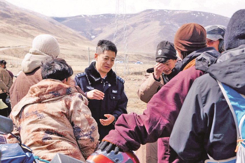看到派出所民輔警如約而至,這些平日里常到派出所辦事的群眾顯得格外高興,“你又來啦!這次和我們住多久?去年你多多照顧我們了?!薄懊磕晟舷x草山都有你,去年挖蟲草,我?guī)У年笈#幸活^跑到別人草場(chǎng)去了,是你這個(gè)所長(zhǎng)幫忙化解糾紛,還一個(gè)人翻山越嶺把牛給我送回來了,太辛苦你了,卡卓、卡卓(藏語(yǔ),謝謝的意思)……”陽(yáng)光下,相互寒暄,深情回味的場(chǎng)景顯得格外溫馨和美,警民臉上的笑容質(zhì)樸、純真,還有甜甜的幸福。