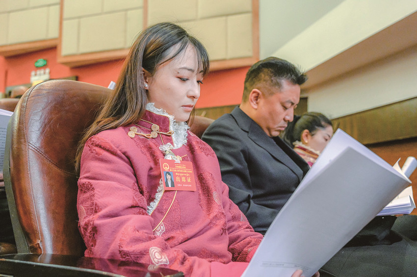 州人大代表認(rèn)真聆聽政府工作報告。
