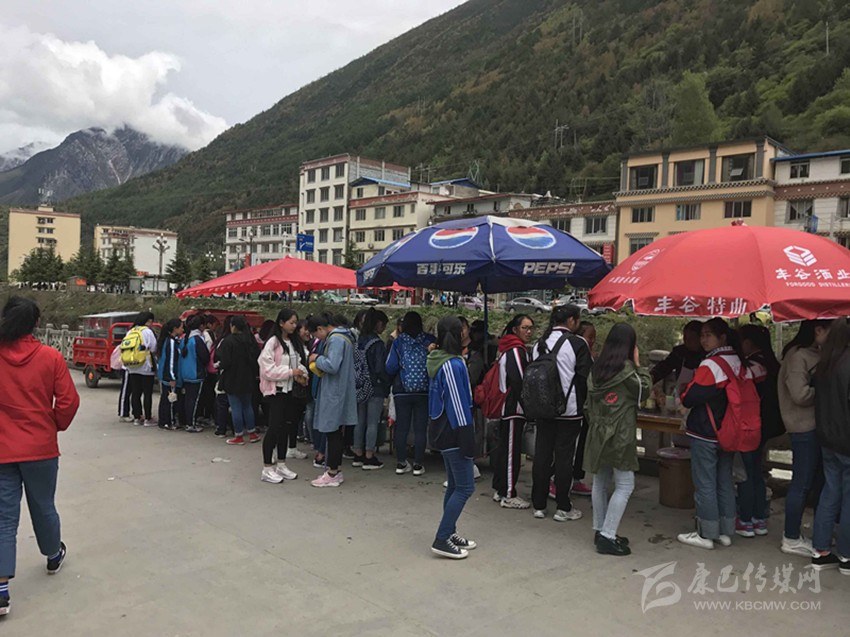 那么真實情況到底如何呢?7日,記者專門來到康定中學走訪調(diào)查。記者搭乘出租車前往學校,途中司機卻回應(yīng)“康中校門口那一段全是賣炸洋芋、炸雞腿的攤攤,車子根本開不過去,只能提前下車?!碑斢浾卟叫羞^橋到達校門口路段時,雜亂無序而又異常喧鬧的場面立刻映入眼簾。約摸十來家燒烤油炸“流動攤點”上,商販們手中的烤具上下翻飛,幾十名身著“康定中學”校服的學生駐足其間,從校門出入的車輛不斷鳴笛避讓??久娼?、炸土豆、烤雞腿,濃濃的油煙、各種調(diào)料混合的氣味、滋滋的油炸聲……儼然一副“美食街”的火爆景象。