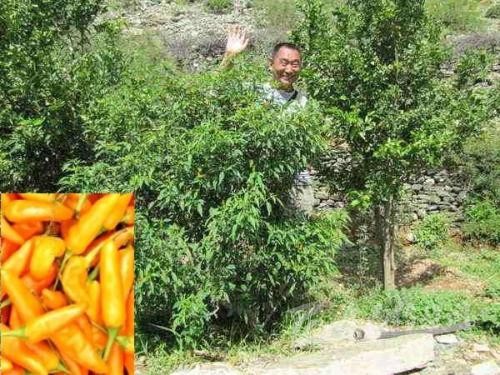 特點:因樹干木質(zhì)化而形成小樹俗稱“樹子海椒”,是多年生植物。最初隨著藏傳佛教的傳入從印度引進,后經(jīng)當?shù)靥厥獾牡乩砦恢煤蜌夂颦h(huán)境長期栽培選育出的一種原始的地方辣椒品種。該品種頭年以種子育苗移栽,當年開花結(jié)果,可以露地越冬,經(jīng)冬不死,每年春季又可發(fā)生新芽開花結(jié)果,植株高可達數(shù)米,葉片披針形,果實短角形,頂端稍尖,成熟后果實金黃鮮亮,其椒果肉薄、辣味濃,可開胃健脾,曾入藏藥,而其樹壽命可長達上百年。
