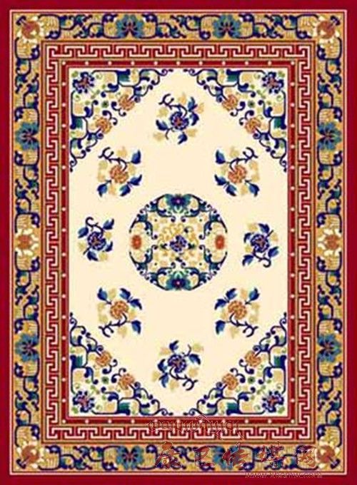 藏毯是植物染色,手工捻線,經(jīng)藝人的精心編織而成。它柔軟、耐用、美觀、大方,又有濃厚的民族特色,對生活在高寒地區(qū)的人們隔潮御寒、保溫取暖有重要作用。因些是長期在牧區(qū)生活所不可缺少的用品。它的品種,有地毯、炕毯、坐毯等。它是在藏族傳統(tǒng)藝術(shù)的基礎(chǔ)上,吸收、融合了漢族、印度和尼泊爾宗教藝人精華,形成具有自己獨(dú)特的藏族藝術(shù)風(fēng)格的工藝美術(shù)品。       傳統(tǒng)藏毯的藝術(shù)風(fēng)格,帶有濃厚的宗教色彩,如佛八寶、暗八仙、國王七寶等。佛八寶即法輪、法螺、寶傘、寶蓋、荷花、寶罐、雙魚、盤花;暗八仙屬漢道教文化即寶劍、寶葫蘆、漁鼓、陰陽板、仙笛、寶扇、花籃、荷花;國   王七寶也稱怵寶,屬印度佛教文化,即方勝、連環(huán)錢、犀角、令牌、象牙、珊瑚、珠寶。還有漢文化的琴棋書畫和梅蘭竹菊等。這些內(nèi)容既展示了人們的勤勞智慧和精神力量,也體現(xiàn)出人們對美好未來的期待、愿望和幻想。藏毯的表現(xiàn)形式以傳統(tǒng)式為主,還有自由式、龍鳳式及隨品種形式不同的構(gòu)圖形式。色彩表現(xiàn)方面尤為豐富,顏色艷麗、純度高、對比強(qiáng),色彩構(gòu)圖穿插靈活,與藏族建筑彩畫的裝飾風(fēng)格一脈相承。