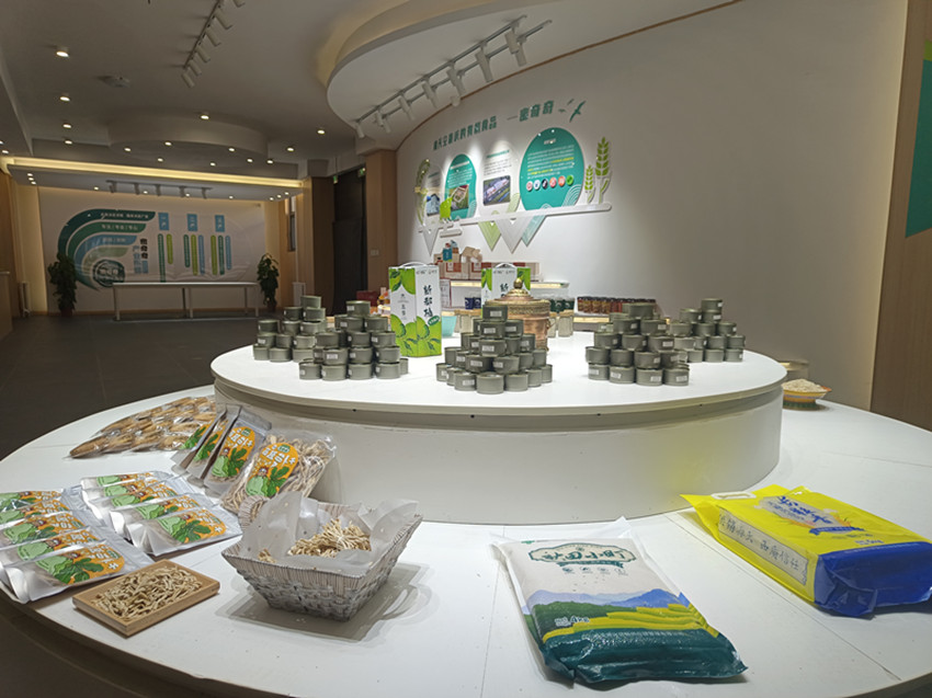 密奇奇公司大廳展臺上琳瑯滿目的有機產(chǎn)品。