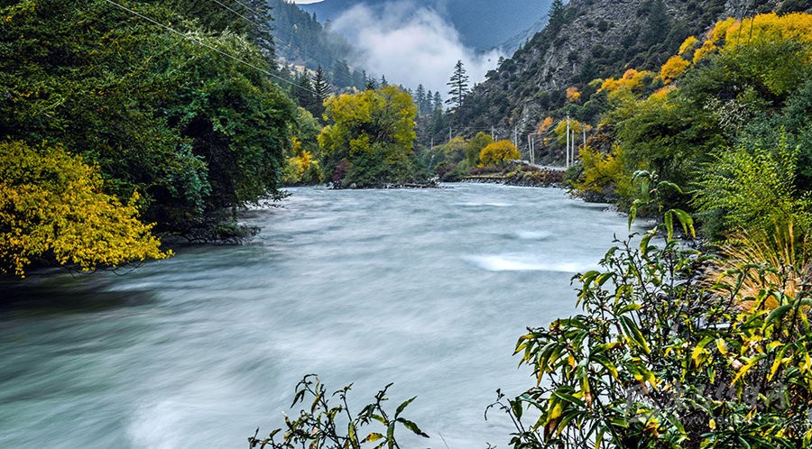 源于康定縣境西北與道孚縣交界處的柯哲德沼澤地帶,為雅礱江的一級支流,至普沙絨鄉(xiāng)(宜代)折向西注入雅礱江。進(jìn)入森林公園后屬高山峽谷地帶,相對高差1200米,河流切割深,地形陡峻,全長30.3公里,平均寬度為30米,最寬處達(dá)80米左右,平均水深5米,最深處可達(dá)30余米,落差2511米,多年平均流量3.47立方米/秒,枯水期僅0.7立方米/秒。兩岸次生天然蒼茫,環(huán)境十分清幽。