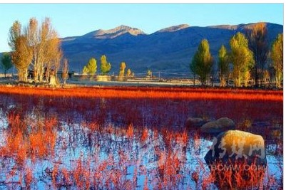 距稻城縣城金珠鎮(zhèn)28公里的桑堆小鎮(zhèn)風景綺麗,在公路沿線的牧場開闊平展,河流平緩如鏡。遙望遠處,在起伏的山巒間散落著村落、牧人、牛羊,呈現(xiàn)一派寧靜祥和的景象。公元1144年前,一世噶瑪巴·都松欽巴覺悟贊譽:“我走遍藏區(qū),來到此地。這里風景秀美,牧草豐茂,六畜興旺,佛光普照。我愿在此修建寺廟成就功德”。金秋十月的桑堆紅草灘總是讓你感覺膠卷不夠用?!?/p>